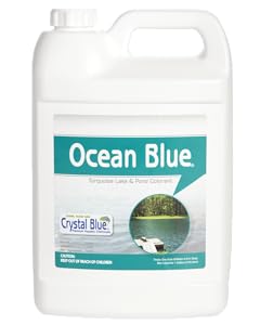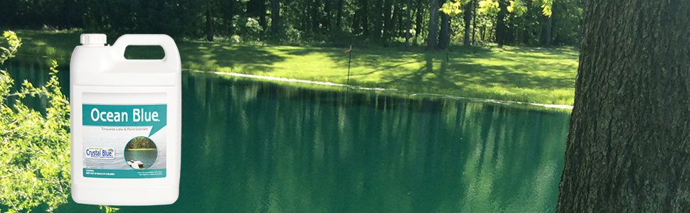 Tinte azul océano estanque tinte azul turquesa. Ocean Blue está hecho de tinte azul y amarillo. Si su estanque está despejado, le dará al estanque una hermosa apariencia turquesa. Si su estanque está actualmente fangoso, marrón puede darle a su estanque un tinte azul muy claro hasta que el barro se aclare. Animamos a los propietarios de estanques que tratan de un tinte para estanque a tomar una foto antes de aplicar el tinte y luego otra imagen a la misma hora del día 24-48 horas después de aplicar el tinte. Es increíble lo sutilmente que un tinte puede transformar tu cuerpo de agua. Indicaciones: Vierta directamente en el agua de la orilla. El tinte se mezcla en todo el estanque en 24-48 horas. 1 galón tratará 1 acre de agua 4-6 pies de profundidad. El tinte durará aproximadamente 30 días dependiendo de la lluvia y la escorrentía. Consejo importante: Todos los estanques tomarán un tinte diferente y el mismo tinte puede aparecer ligeramente diferente en el mismo estanque de una aplicación a otra. Las condiciones preexistentes en un estanque también pueden alterar la forma en que aparece un tinte. Si aplica un tinte de estanque y el tinte es drásticamente diferente de lo que se discute anteriormente, existe una condición preexistente que está alterando el color del tinte. Por ejemplo, los clientes añadirán nuestro tinte para estanque a un estanque bastante verde y el estanque se convierte en un vibrante color verde. La condición preexistente en este estanque es un crecimiento de algas planctónicas. Cuando se añadió el tinte de estanque azul, se intensificó el color de las algas planctónicas verdes. Una vez que las algas son controladas o mueren por sí solas, el hermoso color turquesa aparecerá mágicamente.