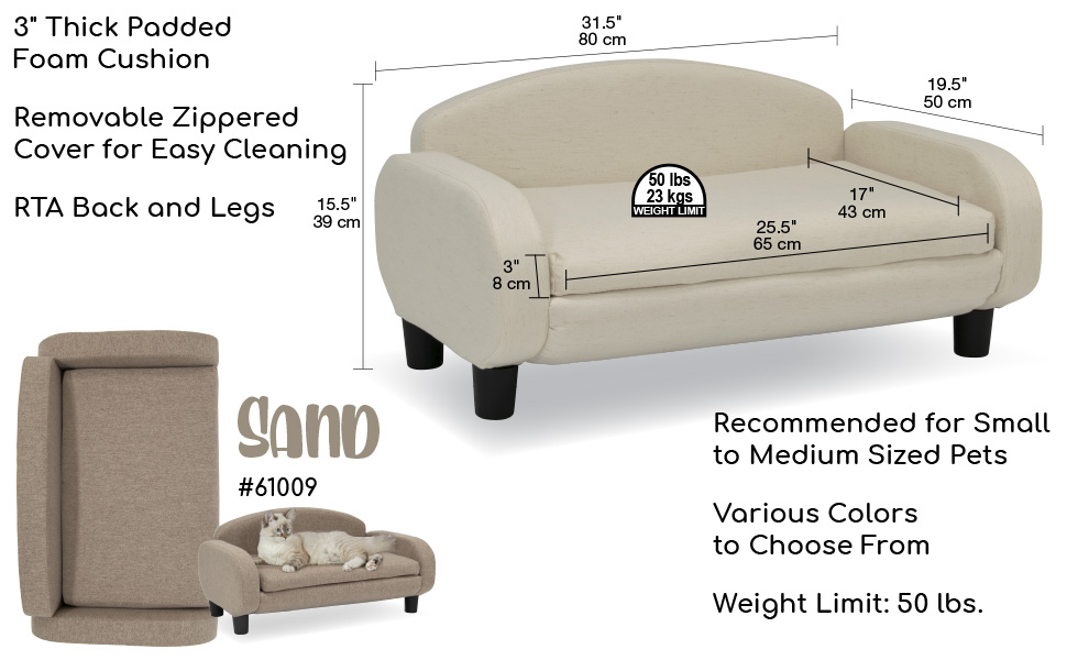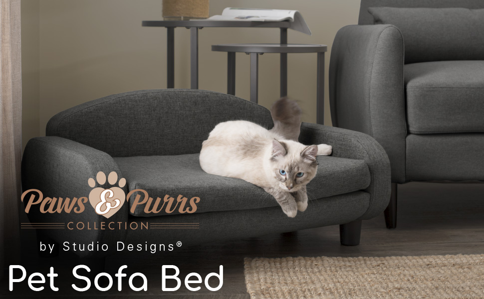 Paws & Purrs Modern Pet Sofa 31. 5' Wide Low Back Lounging Bed with Removable Mattress Cover in Gray